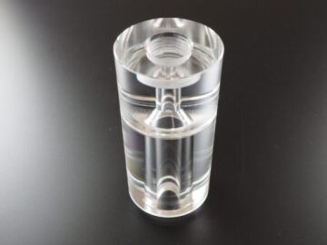 | お客様のご要望・課題 | バイオサイエンス分野の企業から、液体の流れを観察するための筒状部品について問い合わせをいただきました。装置内部の流路を目視で確認する必要があり、透明度が求められていました。しかし、ご要望いただいた形状は全長250mmと長さがあり、加工難度が高くコストや納期の面でも大きな課題がありました。 |