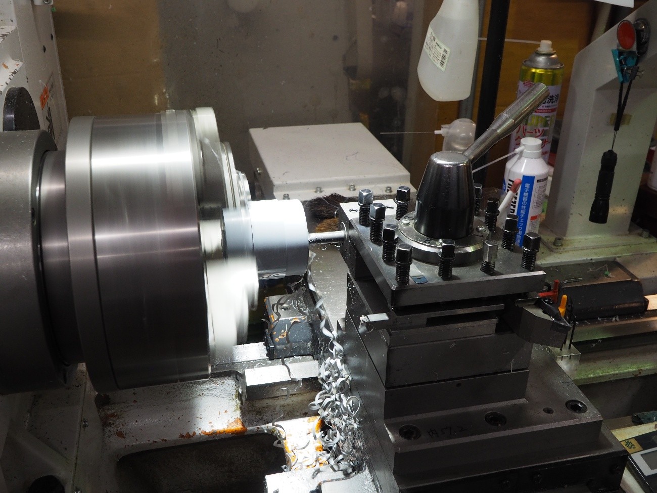 加工は旋盤を中心に進め、外形の削り出し、貫通穴加工、内径の公差調整、摺動面の仕上げという工程を経て、回転性能を最大限引き出しました。